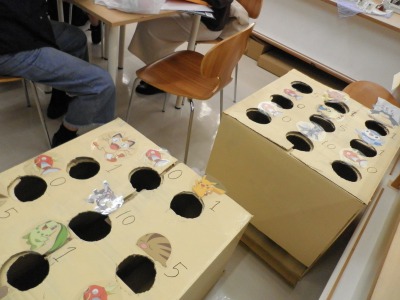 テニスコートでは、射的、ボールすくいといったチームが自分たちも挑戦していました。休憩スペースでは机を綺麗に拭いて、並べる作業です。