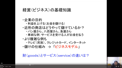 大学ではオンライン授業が始まっています。オンライン授業って…実際にどのようなものなのでしょう。今回はキャリア形成学科の科目を紹介して10回目。「ビジネス・マネジメント原論」という科目のオンライン授業の様子をご紹介いたします。キャリア形成学科の3つの学びの領域の一つである「ビジネス・マネジメント」の全体像についてその概要・全体像を幅広く取り扱う科目です。キャリア形成学科の専門教育の中核を支える内容となります。企業における一般的なビジネス活動全般に関する幅広い知識の修得を目指します。自分で具体的にイメージできるようになることが目標です。