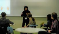 留学生の方と交流する回も何度か設けられました。日本語を勉強している留学生と英語を勉強しているキャリア形成学科学生が4,5人の小グループになって、日本語と英語を交えて質問をしたり答えたり……他国との文化の違いに触れられたようです。好きなアイドルグループが一緒だったり、変わったバイト先だったり…会話のきっかけは実は一緒なのかもしれません。もっと聞いてみたいと思うことで話題が広がるようです。