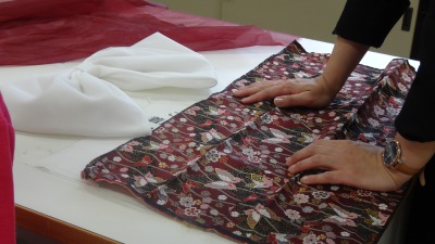 当日、学科で保管しているドレスの中からリメイクしたいものを選んでいただき、実習室で作業しました。