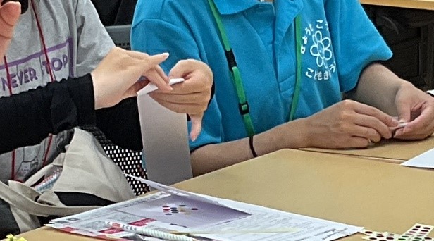 ミニ体験活動では、六角返しという伝統的な手作りおもちゃを作りました。最初は折り方に苦戦しながら行っていましたが、最終的には作り終えた達成感を感じながら3面に好きなようにお絵描きをして楽しみました。本学科の学びではこのように、講義だけでなく自ら体験する活動を通して、知識や保育・教育内容や方法の幅を広げていきます。