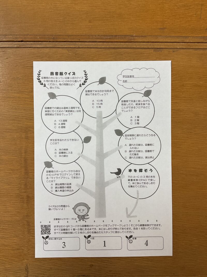 図書館の利用方法のクイズに答えたり、出題された本を広い図書館の中から探したりして、楽しみながらしっかりと心得ました。
