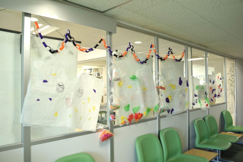 コモンズは、有志の学生のお飾りと授業で作られた作品で、ハロウィンの飾りがいっぱいです🎃 ぜひお越しください😊♪