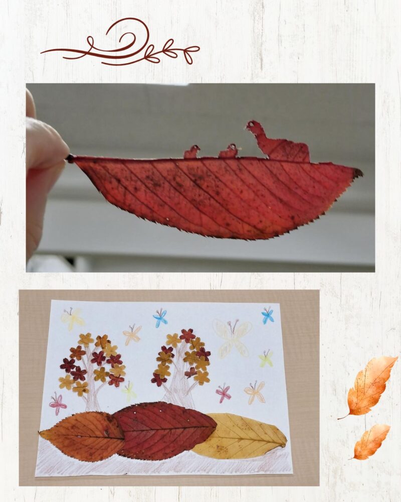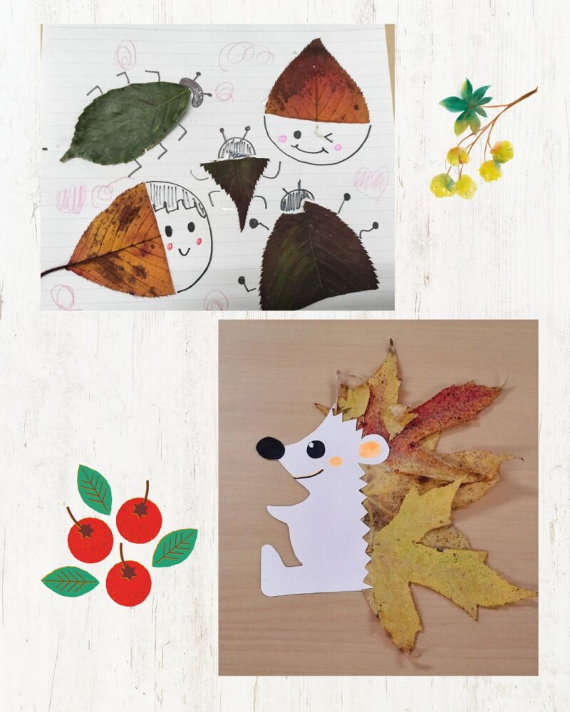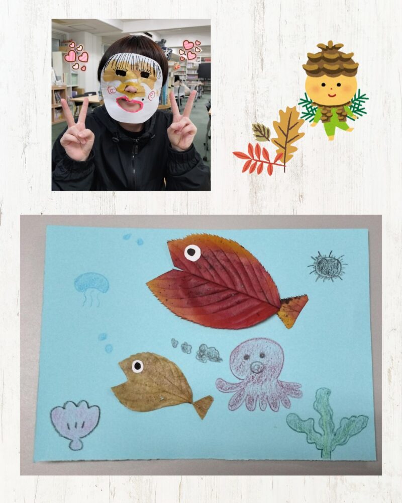 1年生が、落ち葉を使ったとっても可愛い作品を見せてくれました🍂✨ 環境の授業での課題とのことで、どれも個性があふれていて見ているだけでほっこり💛