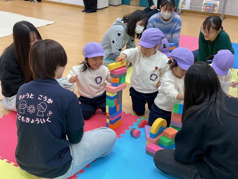 今回のグループは、ブロック遊びが好きなもも組さんの姿から、グループに分けて空き箱をたくさん積み上げる競争をしようと計画していました。