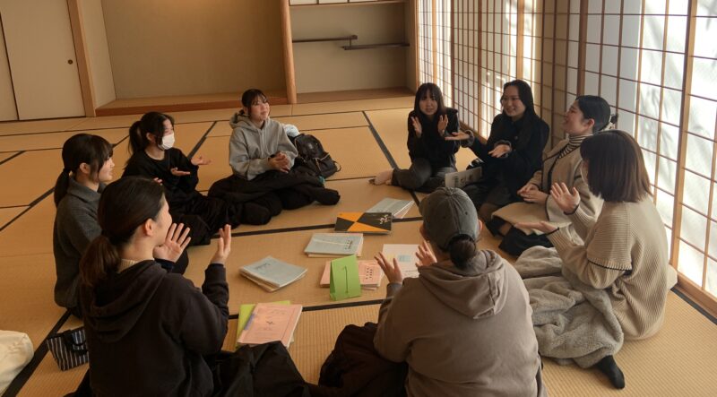 すべての実習を終えた3年生と、これから実習をスタートする1年生が話し合う実習懇談会を行いました。実習の一日の過ごし方、子どもたちとの関わり、実習記録の書き方…と先輩たちの話を1年生は一生懸命に聞いています。実習記録や手作り教材、設定保育で使った用具も見せてもらいました。