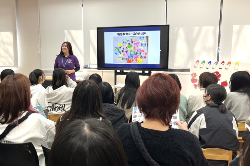 幼児教育コースは学科・コース説明、体験授業、学科施設ツアー、トークタイムの流れで実施しました。