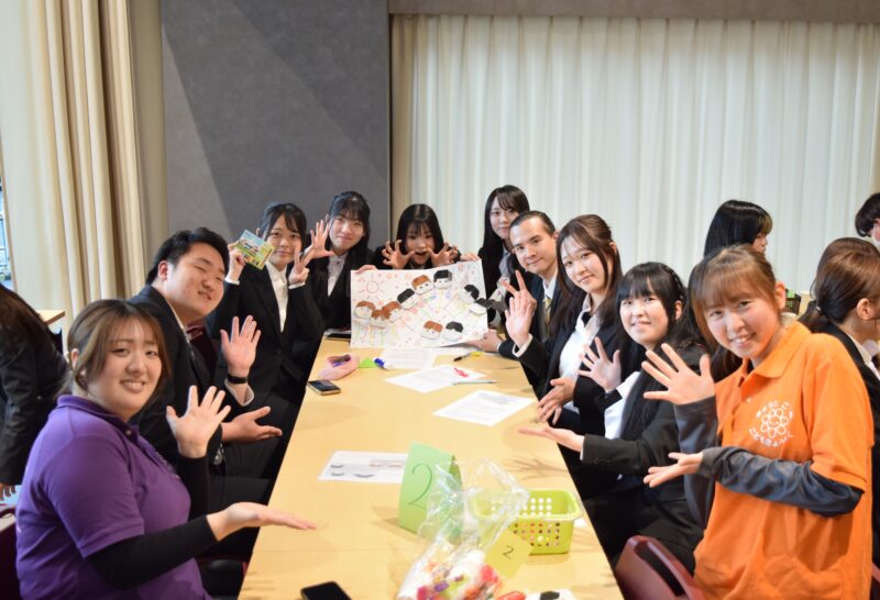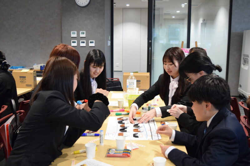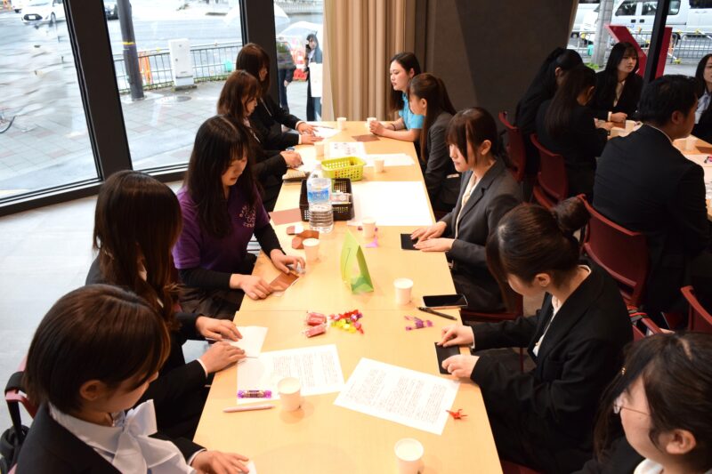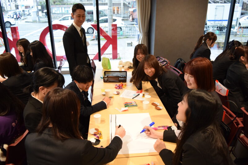 入学式に続いて、新入生交流会を行いました。先輩たちのお出迎えを受けて集まりました。まず、教員からコース選択の説明を聞き、先輩のアドバイスをもらって自分のコースを記入しました。