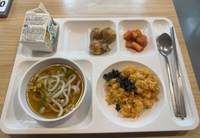 お昼には、私たちのために学生食堂でうどんとタコ焼きを用意してくださるサプライズも!