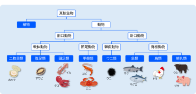 次に、寿司ネタの生物に注目して、種類(生物分類)で整理しました。