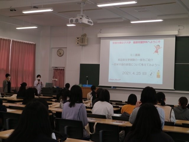 ミニ講義では、食品衛生学実験という授業で取り扱った「食品の鮮度試験」の中から、お米と油、卵の鮮度についてご紹介しました。