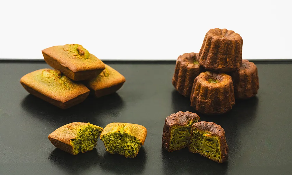 キハダは古くからオウバクという生薬(漢方薬)の原料として利用されている薬木。一般的には、葉っぱの部分は使われず廃棄されてしまう部分ですが、葉酸(ビタミン)、カルシウム(ミネラル)、食物繊維など、さまざまな機能性成分が豊富に含まれていることから、スイーツを開発しました。