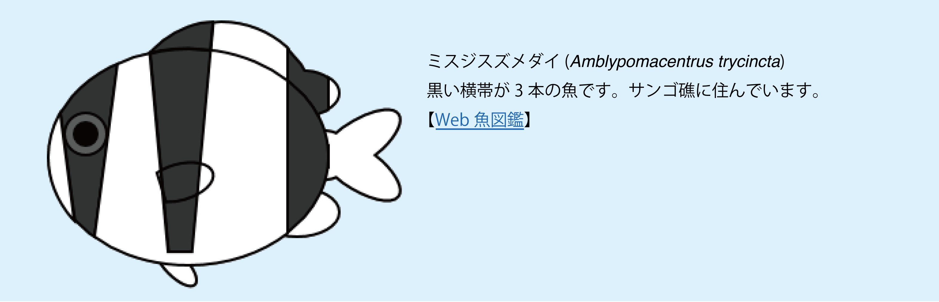 魚の説明にある【Web魚図鑑】は,Web魚図鑑というサイトの記事へのリンクです。魚の写真や生息環境の情報が掲載されています。
