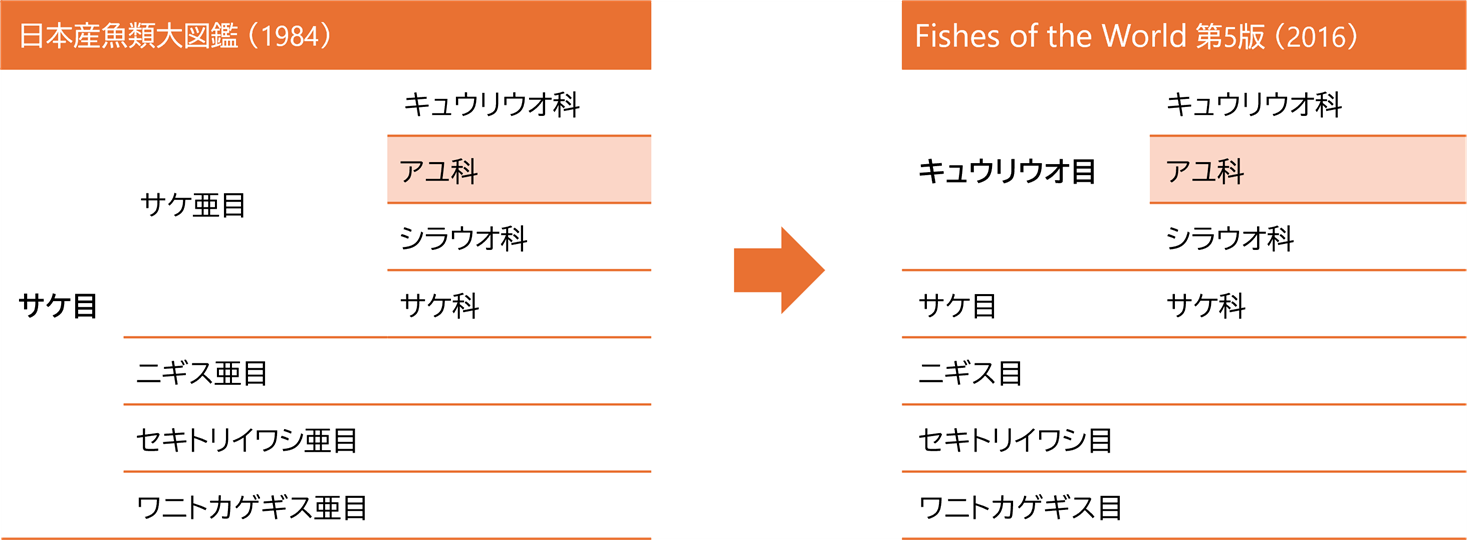 この図を見るとアユはサケ目の魚で,「③ 私の記憶違い」という厳しい現実ではありませんでした。