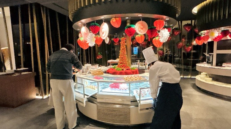 そのために用意しているのが、リーガロイヤルホテル京都のランチバイキングです。写真は1月現在のものですが、4月には歓迎ムードあふれる新メニューが用意されるそうです。スイーツビュッフェやライブキッチン、冷製オードブルからフルーツやソフトドリンクなど、70種類を超える多彩なメニューが皆さんをお待ちしています。