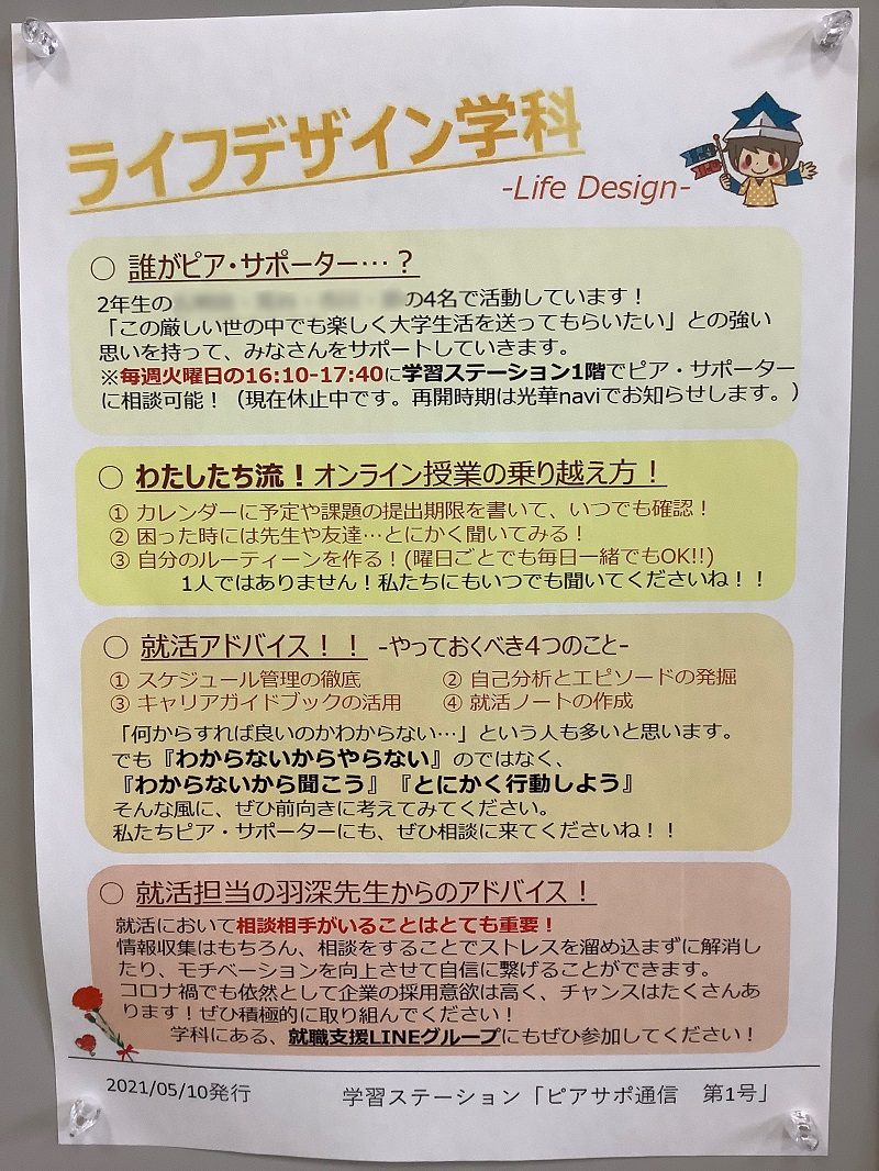 こんにちは。学習ステーションからこんなポスターが届きました! ピアサポーターのお知らせのポスターです! ライフデ ...MORE