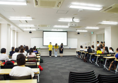 8月6日(日)オープンキャンパスでミニ講義を担当しました。ミニ講義とは、通常であれば先生が担当されるのですが、ライフデザイン学科には、「学生提案型授業」という学生自らが授業を計画し、実際に行う科目があります。そこで、昨年度この科目を受講した私たちに、講師をやってみないかというお話がありました。学生が行う授業というのがどのようなものか、高校生に実際に見てもらえるよい機会になると思い、喜んで引き受けました。