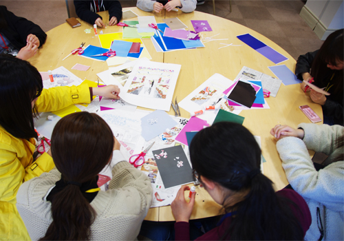 初めは知らない人ばかりで不安でしたが、みんなで協力しながら作品を仕上げるので、徐々にみんなの距離が近くなりました。話し合って、「色紙を切る人」と「色紙を貼る人」に分かれて作業しました。