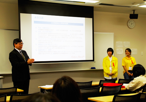 午後からは、AO入試説明会を開催しました。私もAO入試だったので、これから受験される高校生へアドバイスをする学生として参加させていただきました。AO入試の感想や合格の秘訣などをインタビューされ、ほぼアドリブで答えました。拙い説明だったと思うのですが、来場してくださった高校生や保護者の方は真剣に聞いてくださいました。