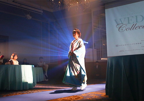 リハーサルのときにランウェイの歩き方や裾の持ち上げ方、手の添え方、回転するときの目線の位置など、しっかり指導してくださったので緊張することなく本番を迎えることができました。結婚式と言えば、ドレスという印象が強いかと思います。今回実際に着てみて、ドレスに負けない日本独特の文化、華やかさ、そして落ち着いた雰囲気と奥ゆかしさ、大人っぽさも感じる色打掛に魅力を感じました。試着する機会は滅多にないので、良い機会になりました。