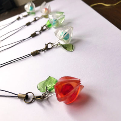 こちらを制作するにあたって、一番難しかったのはプラ版上での形を取ることです。正確に五等分の花の様な形にしなければ丸くできないし、間に入れる切り込みが浅かったり深かったりすると曲げた時に影響してしまって失敗することになるからです。何度も失敗し、試行錯誤し、販売までに至りました。