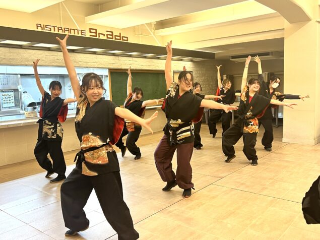 ペアやグループで互いのためのブレスレットを作った後、京都民際日本語学校のネパール人留学生による母国のダンスと、本学よさこいサークル華羅紅(からくれない)による演舞が披露され、最後は参加者全員で一緒に踊り、大いに盛り上がりました。