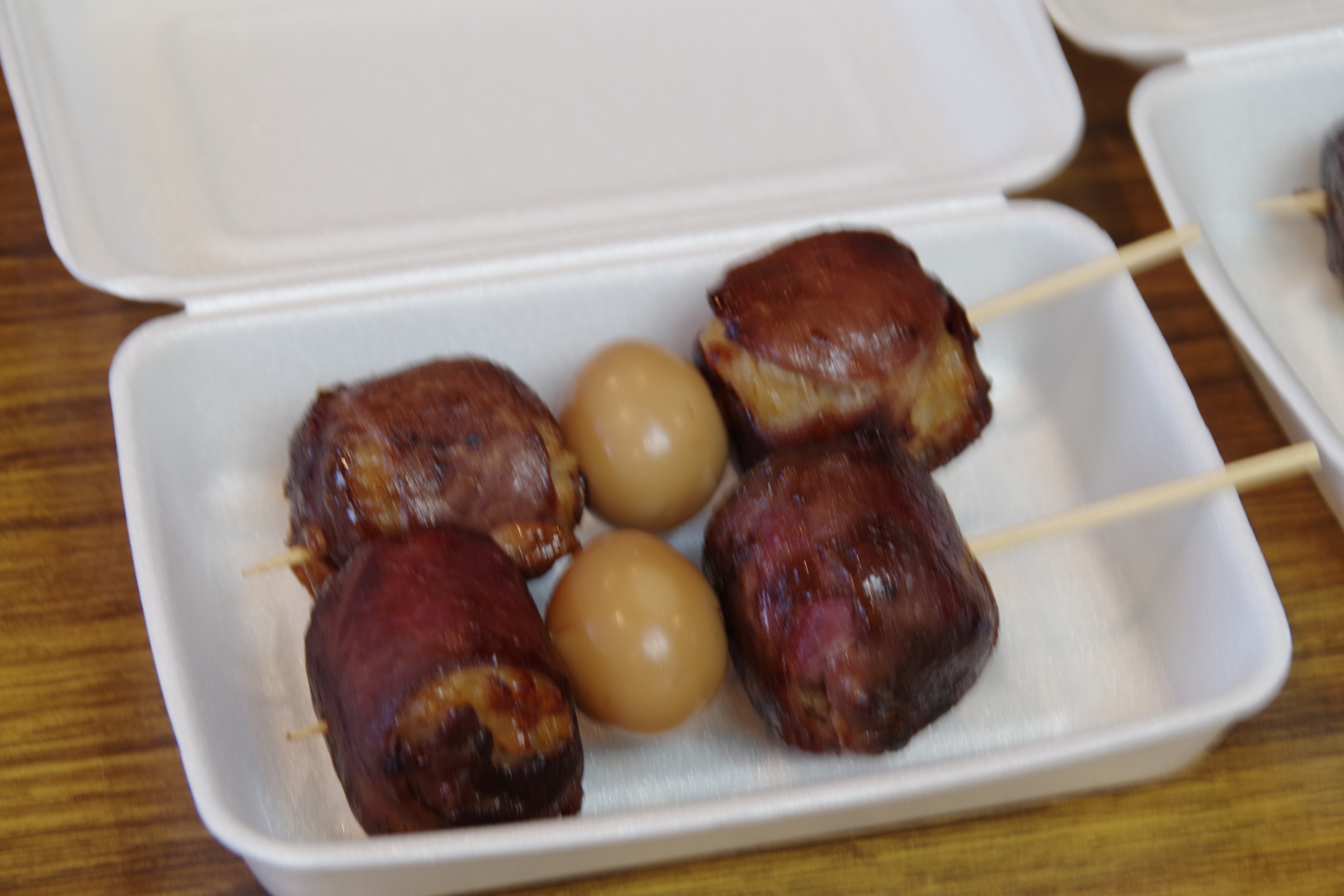 肉巻きは肉を巻くのも串にさすにも手間がかかり、また、うまく巻けていないと焼いた時に肉がはがれてしまい、販売できないものが1割程度あり、むずかしいメニューでした。