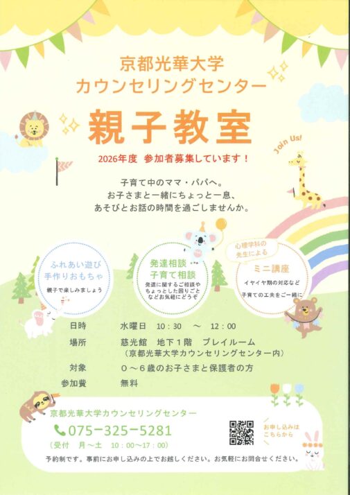 参加希望の方は、参加日時の前日(火曜日)17時までにこちらよりお申し込みください。 お電話でのお申し込みも受け付けています。(カウンセリングセンター直通:075-325-5281)