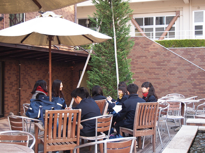 その後、学生の案内により、大学の建物や屋上庭園を見学していただきました。
