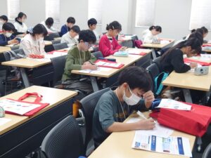 交流会では、初めて会う仲間たちとアイデアを出し合いながら、課題に挑戦!目を輝かせて話す子どもたちの姿がとても印象的でした。これから始まる研究活動へのワクワク感と期待感がますます高まった様子でした。