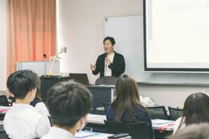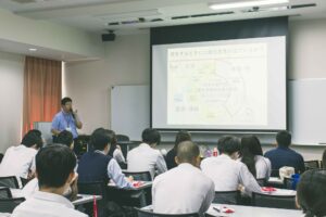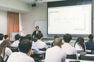 本学 キャリア形成学部長 高野 拓樹 教授が講師を務め、「環境と防災~持続可能な暮らしのヒント~」のテーマで環境問題と防災に関する授業を行いました。