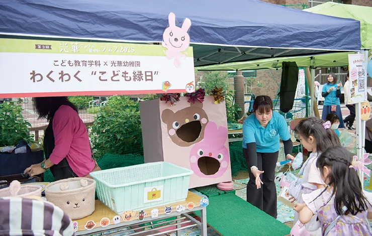 こども教育学科の学生が「ワクワクフェスの光華こどもひろば」を開きます。動物のお面を作って頭につけてみましょう。見合っておしゃべりしたら楽しいですね。紙芝居タイムもあります。子どもたち、遊びに来てね。