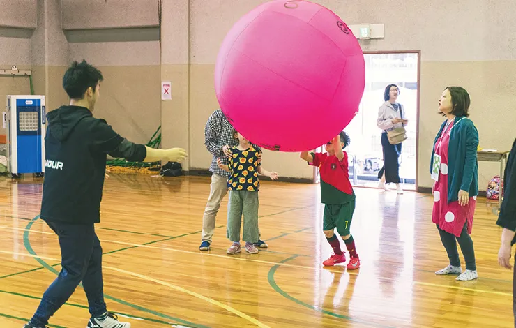 「キンボール」って知っていますか?子どもの身体と同じくらいの大きさ(122cm)のボールを床に落とさないように競技する、誰でも楽しめるスポーツです。経験のない人でも、まずはこの大きなボールに触れてみませんか。