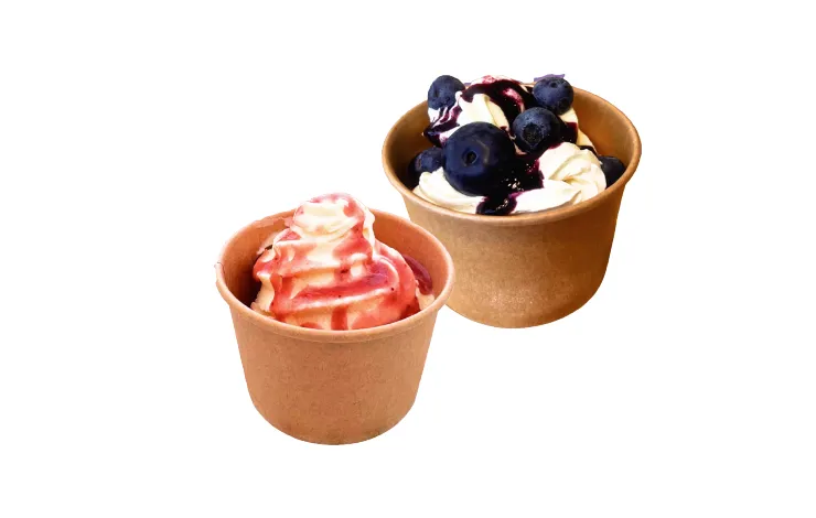 栽培期間中、化学農薬不使用のブルーベリーをたっぷりのせた特性アイス!