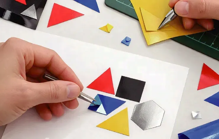 〜カッティングシートであそぶ、つくる!〜看板・サインによく使われるカッティングシート、その切り端をクリエイティブの素材に変身!不思議でカラフルな動物に組み合わせて、キャンパスに(指定場所に)ペタペタ貼って飾りましょう!