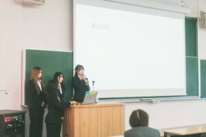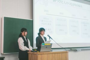 どの団体も各学科の学びを活かした本学の学生らしい素晴らしい発表でした。2次審査では審査ポイント(社会貢献性、共創の深さ、共感度、チャレンジ性、期限の厳守)に基づき審査がなされ、以下の通り、金賞・銀賞・銅賞が決定しました。それぞれが地域・社会課題に取り組み、共創の力を発揮した点が評価されました。