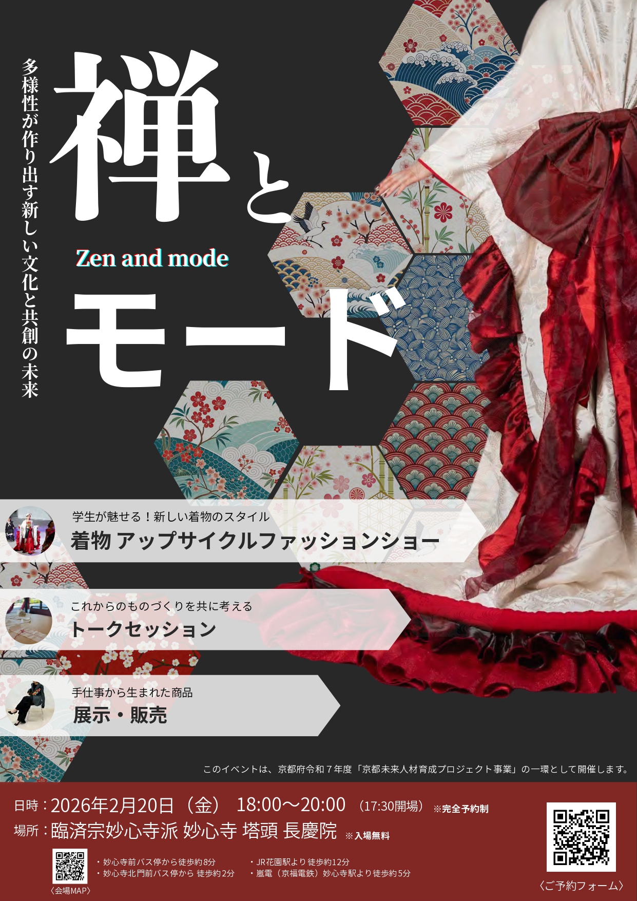 本学は、京都府令和7年度「京都未来人材育成プロジェクト事業」採択事業として、2026年2月20日(金)にイベント「禅とモード 多様性が作り出す新しい文化と共創の未来」を開催します。
