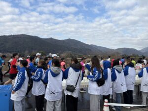 澄み切った空のもと、マラソンが始まると、給水作業だけでなく、ランナーに大きな声でエールを送りました。当日は季節外れの温かな陽気であったため、例年以上に給水をするランナーが多くいる印象でした。ランナーからはハイタッチとともに「ありがとう!」と感謝の声をたくさんいただきました。