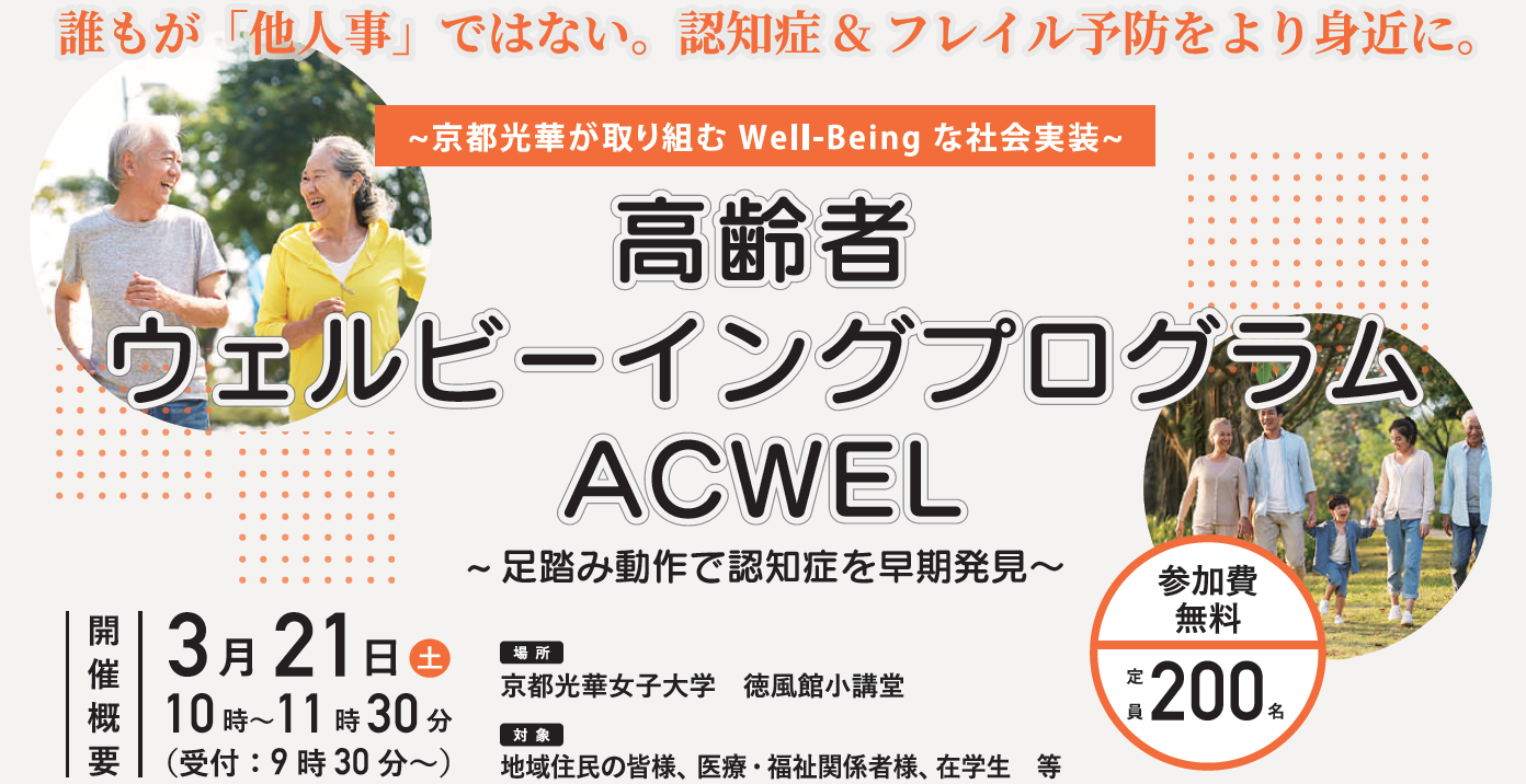2026年3月21日(土)に、大阪大学の八木康史教授をお迎えし、講演会「高齢者ウェルビーイングプログラムACWEL ~足踏み動作で認知症を早期発見~」を開催いたします。