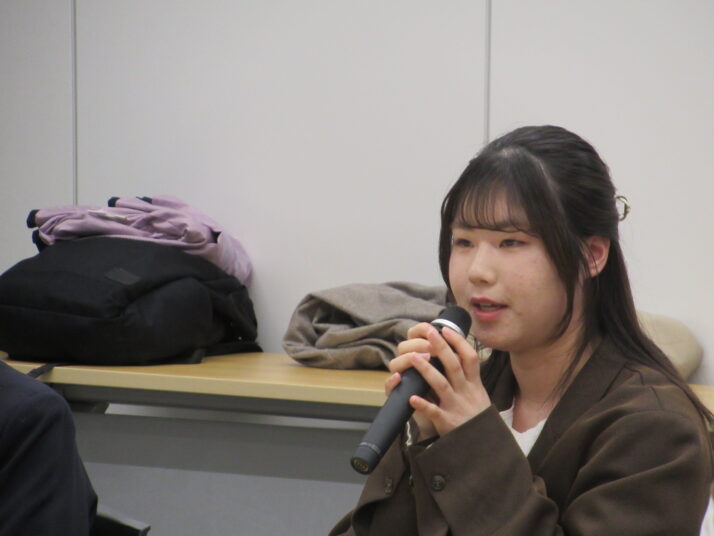 会議では主に、京都市による自殺対策計画の報告や自殺対策に取り組む各団体から情報共有があり、竹下さんは、大学生特有の生活課題に着目した意見を述べました。忙しさや経済的な理由から大学生がおろそかにしがちな「食」に着目し、それが心の不安やストレスを増幅させる要因になっているのではないかという意見には、多くの会員がうなずいていました。また、その対策として「大学生版こども食堂」のような低価格で栄養バランスの取れた食事提供の場を設ければ、自殺予防に大きく寄与するのではないかという提案には、連絡会の会長も「素晴らしいご提案ですね」と高く評価されました。