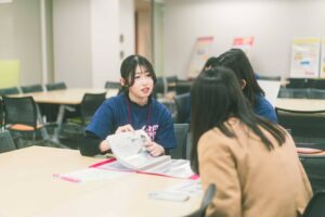 当日は、大学・短大全体説明会をはじめ、入試説明会、学科説明・体験学習、キャンパスツアー、個別相談ブース、学食体験など、京都光華大学の学びやキャンパスライフを幅広く知っていただけるプログラムを実施しました。