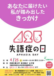 京都光華大学は、4月25日(土)の「失語症の日」にあわせて開催される全国規模の記念イベントの京都会場となります。