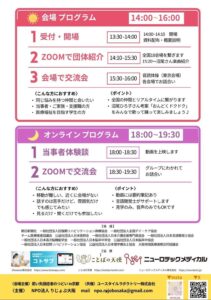 | 18:30~19:30 | Zoomで交流会(グループに分かれてお話し合い) |