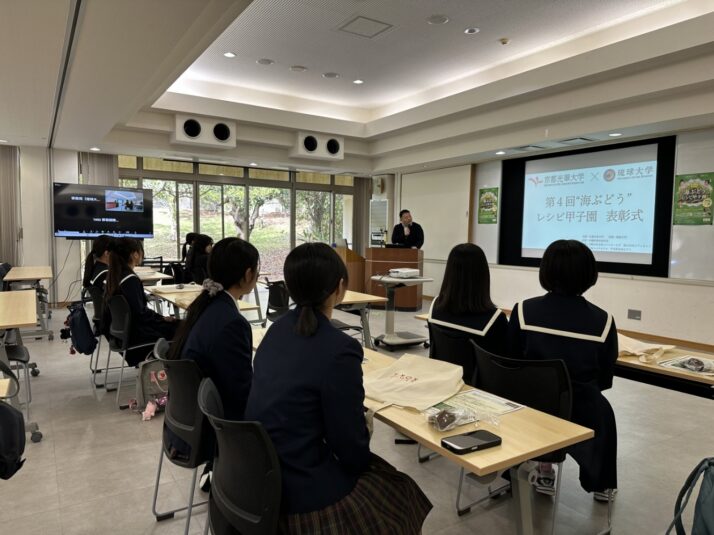 本学が琉球大学との共催で沖縄県の高校生を対象に開催した『第4回”海ぶどう”レシピ甲子園』(後援:沖縄県教育委員会、協賛:有限会社共栄コントロールズ/株式会社ラフィネット/大阪コロナホテル/平安座島 海ぶどう)において、最優秀賞が決定し、琉球大学にて表彰式を執り行いました。