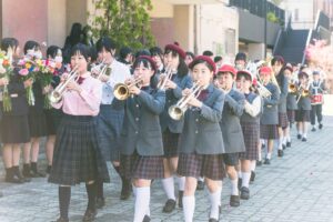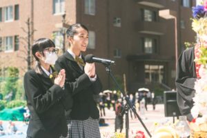 式典では、中高の生徒が持参した花を献花し、中高吹奏楽部と聖歌隊による讃歌のもと、厳かさの中にも華やかさのある法要が営まれました。