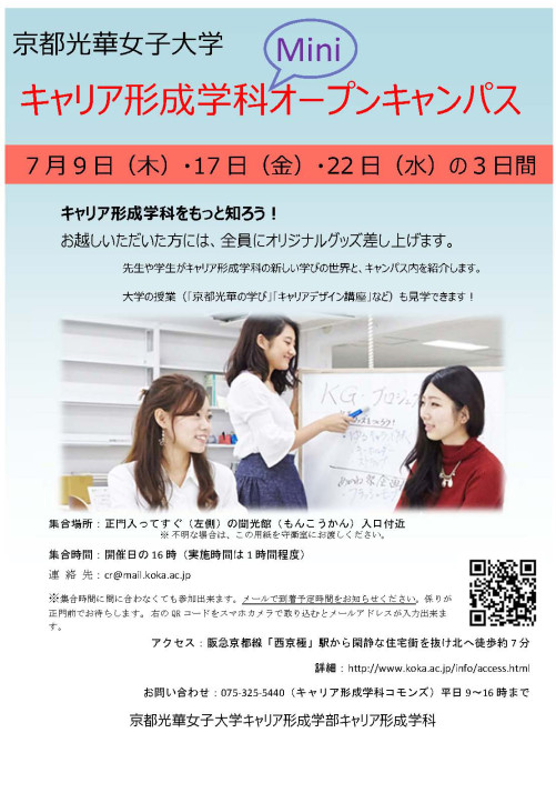 お問い合わせ:075‐325‐5440(キャリア形成学科コモンズ)平日9~16 時まで
