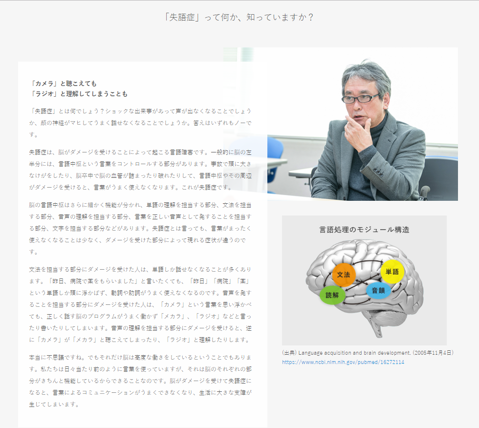 今回は、第二弾として、医療福祉学科 言語聴覚専攻 瀧澤 透 教授が「失語症」について、解説しています。
