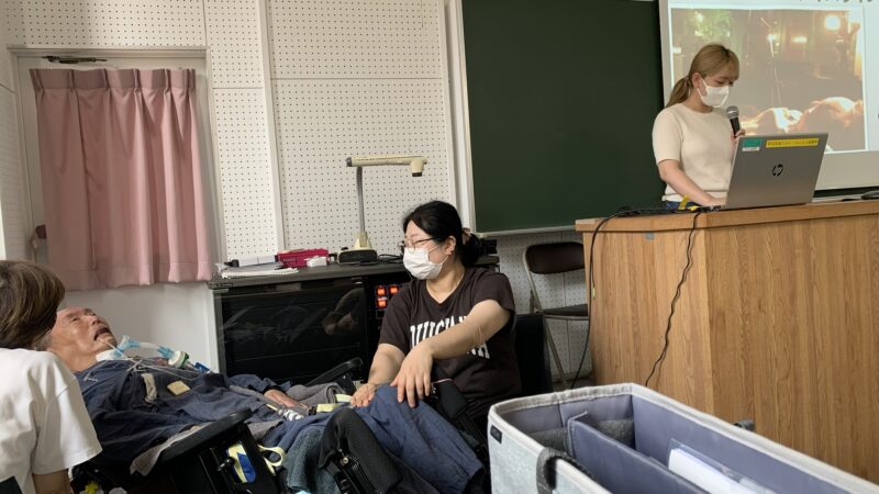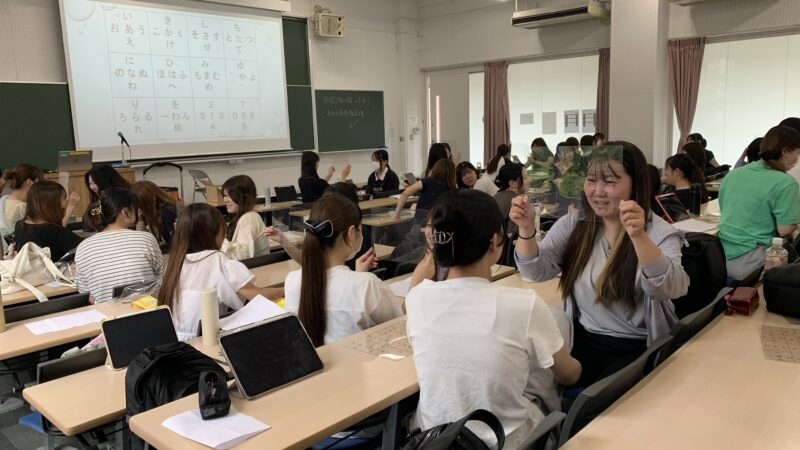 授業の中では、学生さん同士で、ALSの方にとって不可欠となる、コミュニケーションツールの一つ「文字盤」を実際に体験してみました🙂