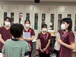切迫早産の方の事例を想定し、入院時のかかわり方について学びました。教員が産婦役となって演習を行い、実際の場面をイメージしながら取り組みました。