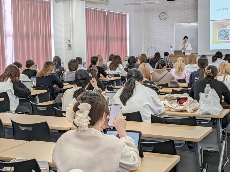 学生たちはタブレットやノートを使いながら、内容をしっかり受け止めています。